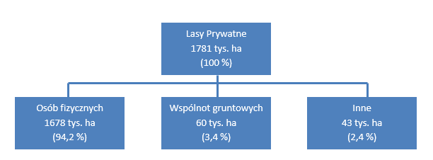 Na terenie Polski ok. 94,2% lasów prywatnych należy do osób fizycznych. Stosunkowo dużą część stanowią te lasy prywatne, które są w zarządzie wspólnot gruntowych (ponad 3%). Pozostałe – takie jak lasy prywatne należące do rolniczych spółdzielni produkcyjnych, kościołów, związków wyznaniowych, zawodowych i innych, zajmują stosunkową małą powierzchnię.
